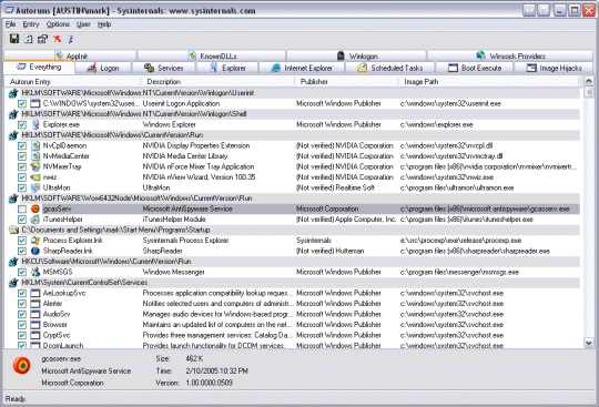 Avantage majeur d'Autoruns : il ne nécessite pas d'installation et se présente sous la forme d'un petit exécutable qui peut facilement être copié sur une clé USB par exemple.
