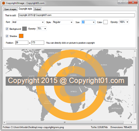Copyright2Image est un logiciel qui vous permet d'ajouter simplement un copyright (aussi appelé watermark) sur toutes les images que vous souhaitez protéger.