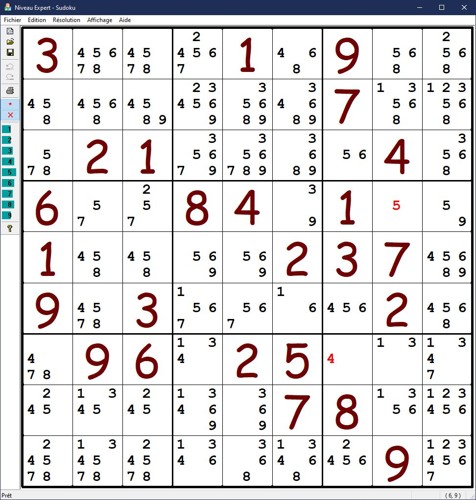 Ce jeu implémente les méthodes habituelles de résolution utilisées par les amateurs et permet grâce à ces programmes de déterminer le niveau de difficulté d’une grille particulière.