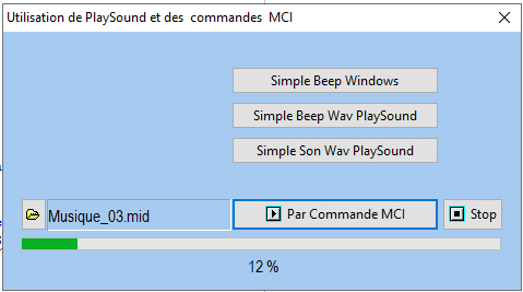 Utilisation des instructions PlaySound, mciSendString